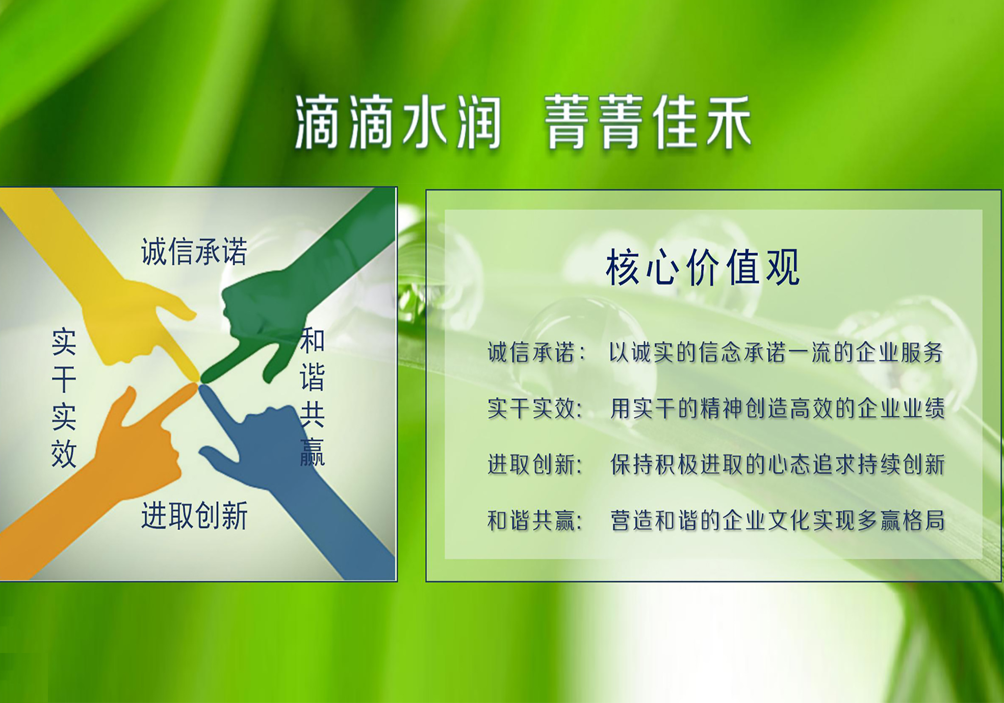 水潤(rùn)佳禾成立于2007年,是一家精準(zhǔn)灌溉和設(shè)施農(nóng)業(yè)全產(chǎn)業(yè)鏈解決方案的科技型企業(yè)。旗下公司水潤(rùn)佳禾(北京)科技有限公司、河北雨農(nóng)水務(wù)科技有限公司、新農(nóng)寶盒(北京)智慧農(nóng)業(yè)公司、佳禾現(xiàn)代農(nóng)業(yè)科技園四大業(yè)務(wù)版塊。主要從事塑料管道、灌溉產(chǎn)品的制造和銷(xiāo)售;農(nóng)業(yè)、園林灌溉、水肥一體化工程的勘測(cè)、設(shè)計(jì)、施工;農(nóng)業(yè)物聯(lián)網(wǎng)產(chǎn)品的研發(fā)和制造;設(shè)施溫室精準(zhǔn)栽培一站式解決方案等業(yè)務(wù)。公司位于北京市海淀區(qū)中關(guān)村產(chǎn)業(yè)園,注冊(cè)資本1.1億元。公司以中國(guó)農(nóng)業(yè)大學(xué)、中國(guó)水利水電科學(xué)研究院、中國(guó)農(nóng)機(jī)研究院為技術(shù)依托單位,中國(guó)灌排協(xié)會(huì)甲級(jí)資質(zhì)企業(yè),中國(guó)溫室協(xié)會(huì)會(huì)員、中國(guó)農(nóng)業(yè)機(jī)械化協(xié)會(huì)會(huì)員單位,擁有多年、多學(xué)科的... 更多